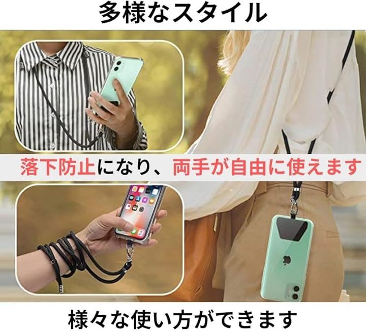 スマホストラップ ショルダー 首掛け 忘れ物対策 落下防止 全スマホ装着可能 長さ調整可能 75~150cm