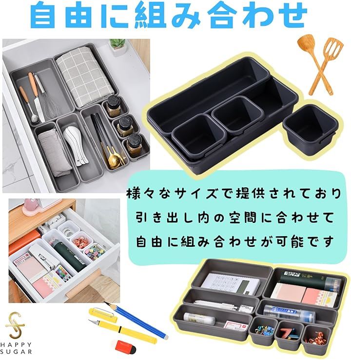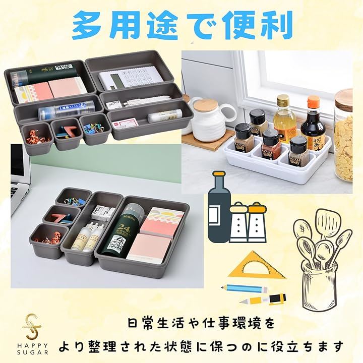 引き出し 仕切り デスクトレー 収納トレー 仕切りカーテン 整理トレイ キッチン 文房具 小物 化粧品 自由 組み合わせ 8個セット