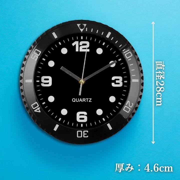 腕時計風掛け時計 壁掛け時計 選べる4カラー 大きく見やすい時計 直径28cm リビングルーム clock 掛時計