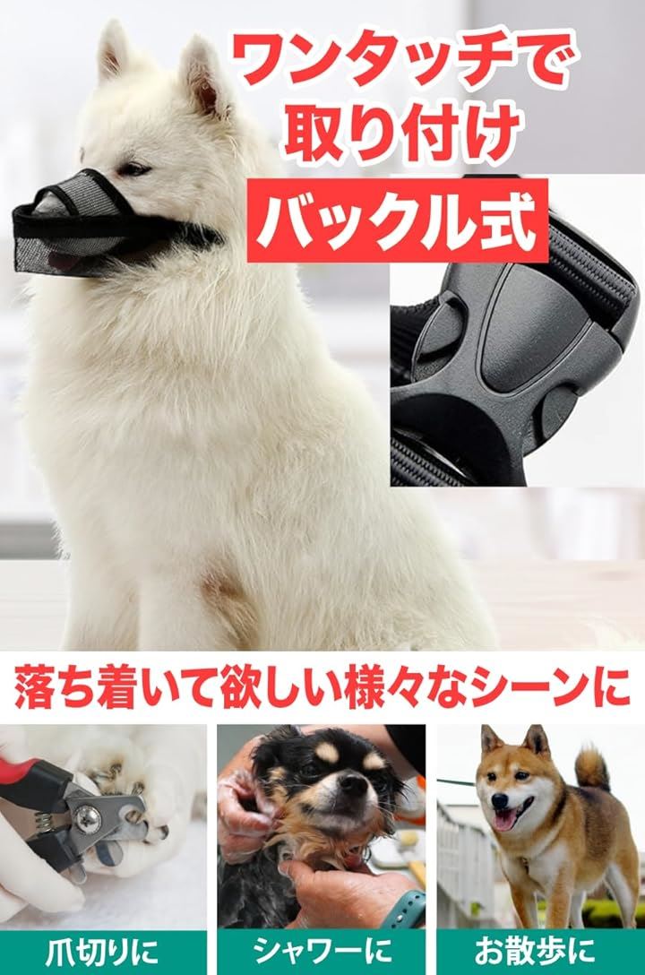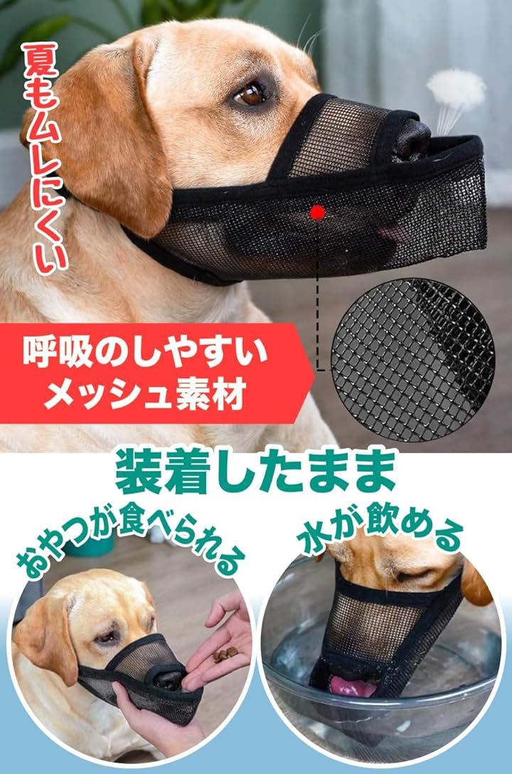 AllBright 犬用マズル 口輪 噛み防止 無駄吠え防止 家具破壊防止 水が飲める 通気性 メッシュ