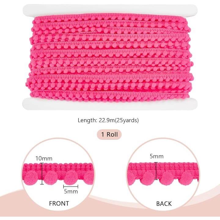 22.8m 幅1cm ポンポンリボン 紫 片面ポンポンリボン ミニポンポン ポンポンデコレーション タッセルリボン タッセルレース 縫製 DIY ハンドメイドDIY 手芸用品 ソーイングアクセサリー