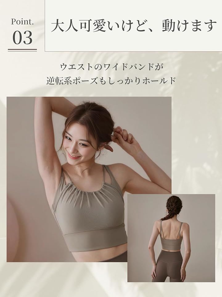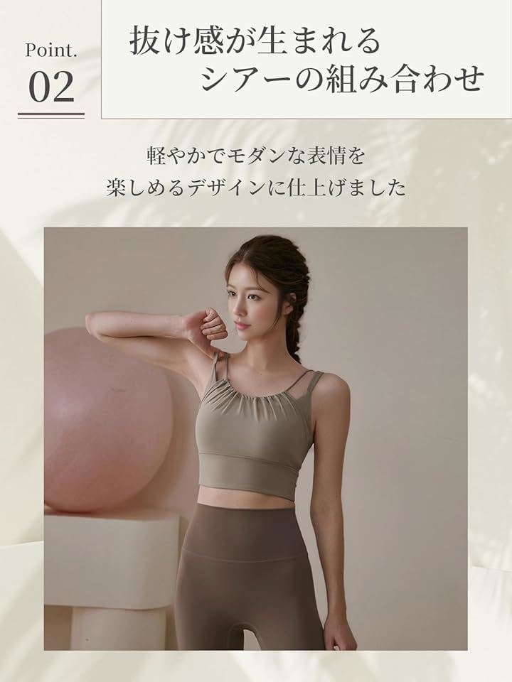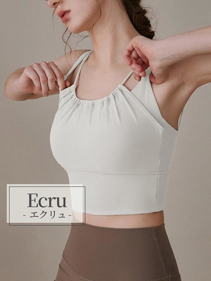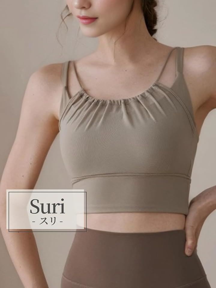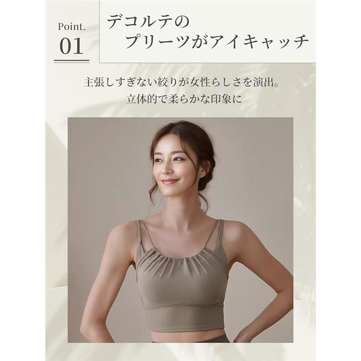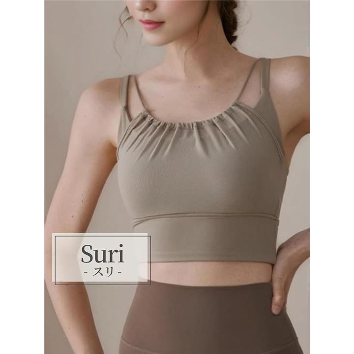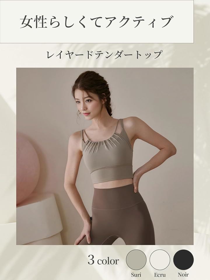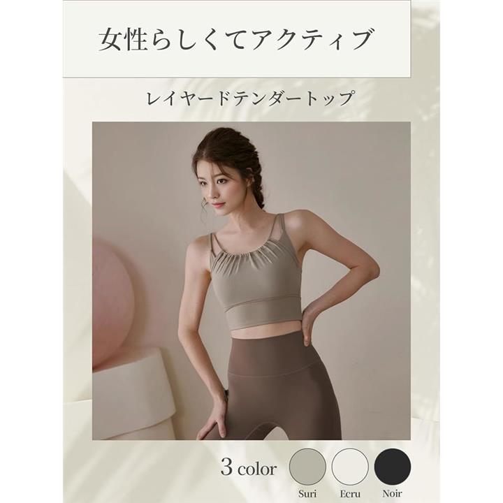 レイヤードテンダートップ ヨガウェア ピラティス ブラトップ レディース 人気 おしゃれ トップス 可愛い めくれない カップ パッド アンデジ