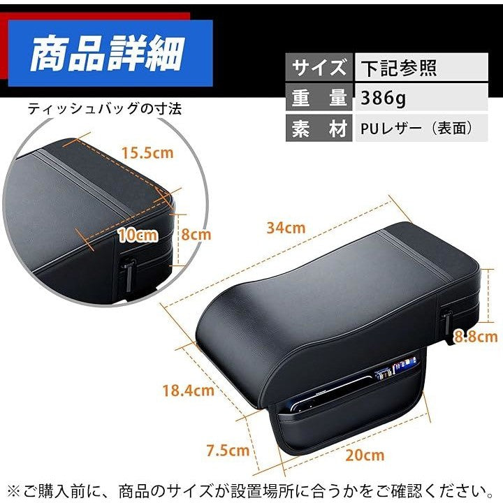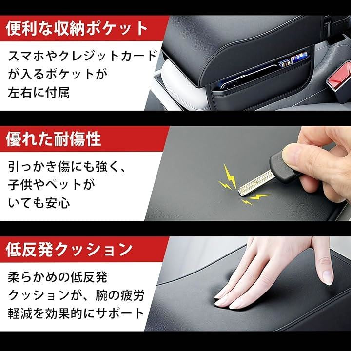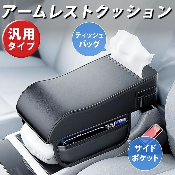 互換品 アームレストクッション 車用 アームレストカバー 汎用 ポケット付き ヴェゼル ヤリスクロス キックス ティッシュ収納 肘掛け