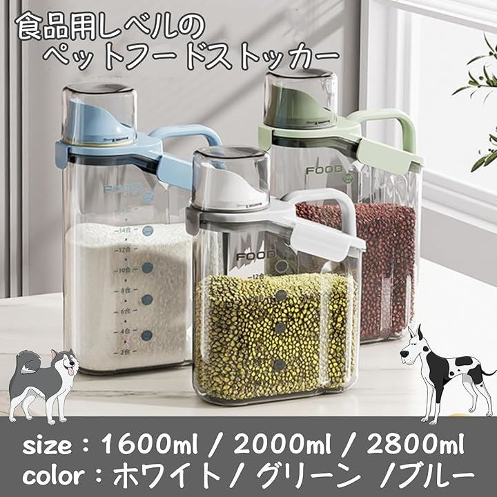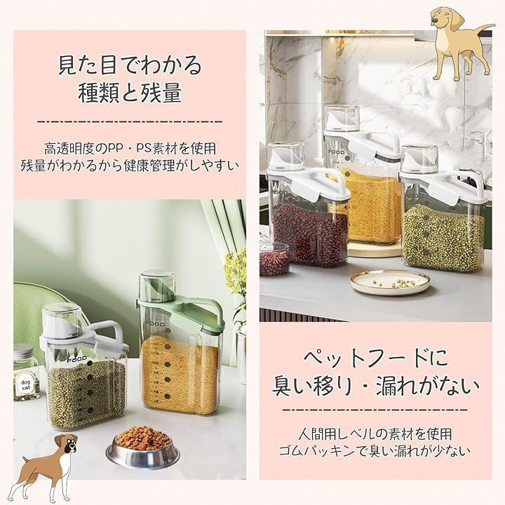 互換品 ペットフードストッカー ドッグフード 餌 保存容器 密閉 キャニスター 犬 猫 食品保存容器 ドライフード 残量がわかる 計量カップ付