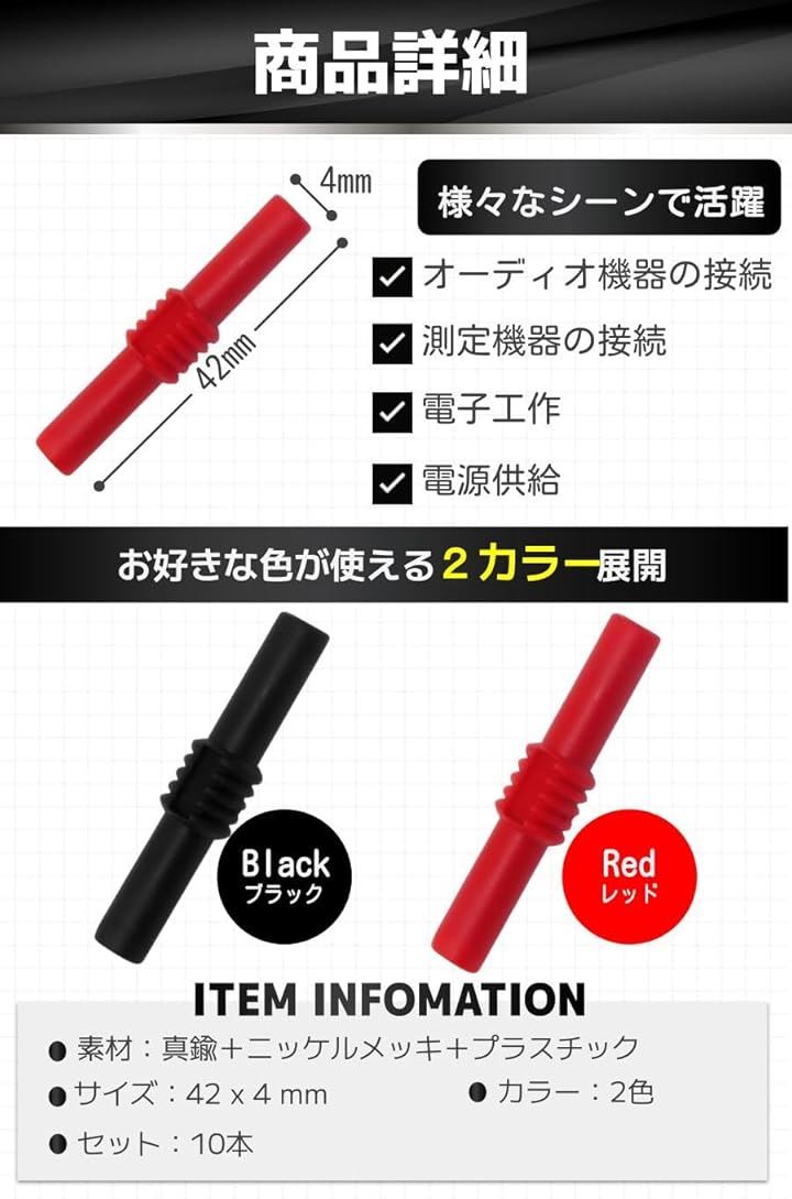 バナナプラグ メス バナナジャック 端子 赤 黒 コネクタ 10本セット