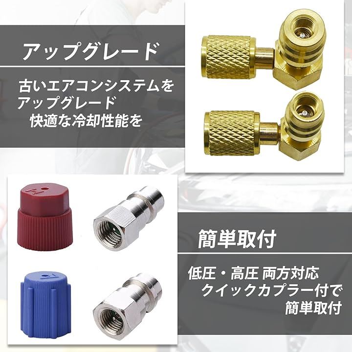 R12 R134a 変換アダプター チャージ バルブ レトロフィットポート クイックカプラー 低圧用 高圧用 エアコン