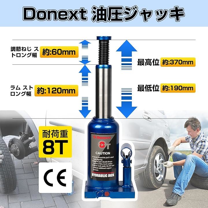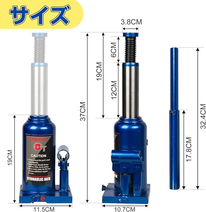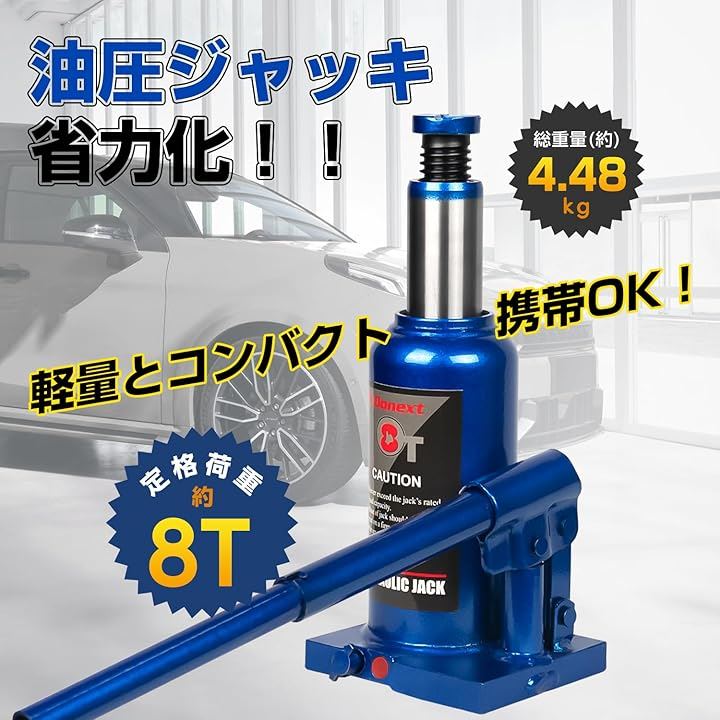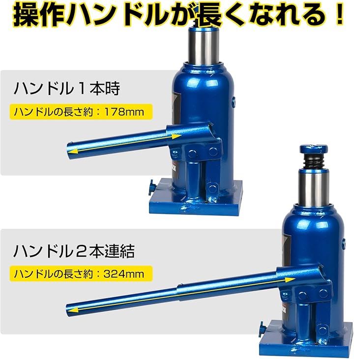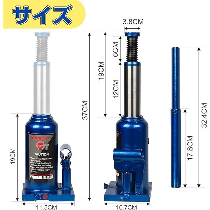 油圧ジャッキ ボトルジャッキ 荷重 スチール製 CE規格適合品 軽量 車用 タイヤ交換 ブルー