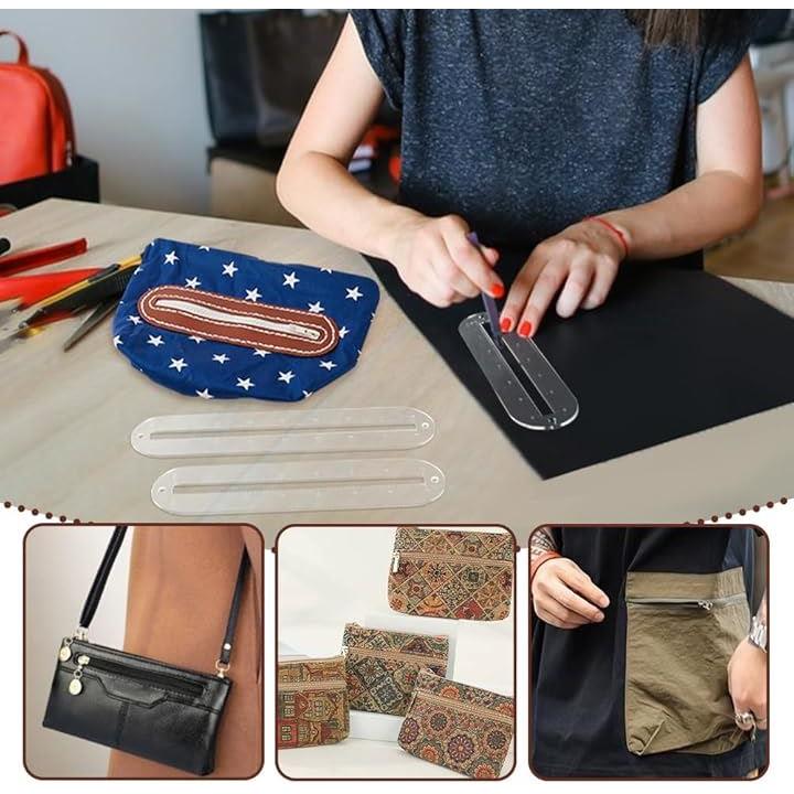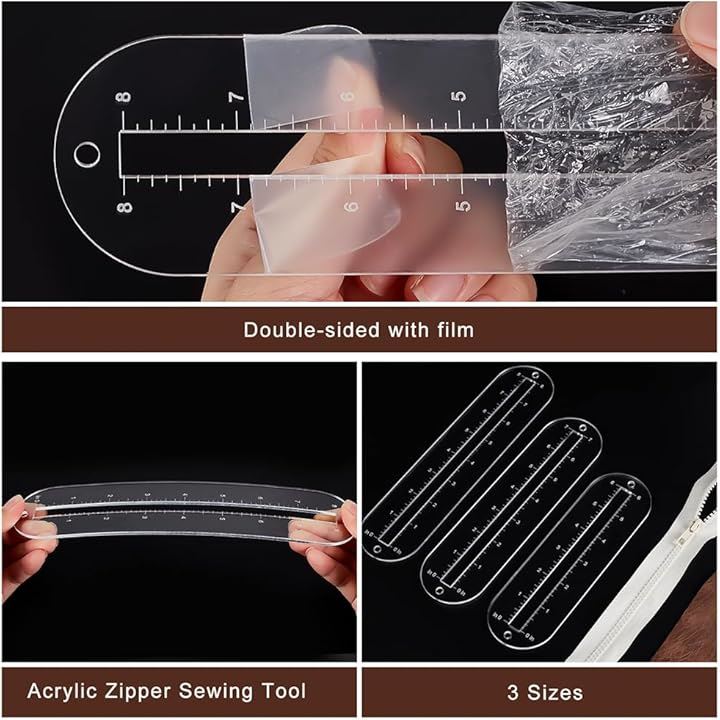 3個 ジッパーガイド縫製ツール 楕円形 カスタムアクリルジッパー縫製ツール ジッパー用接着剤 縫製用