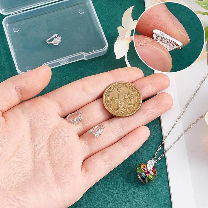 925スターリングシルバー 4個 ペンダントクリップ プラチナカラー ピンチベイル ペンダントクラスプ スターリングシルバーピンチベイル ネックレス ジュエリー
