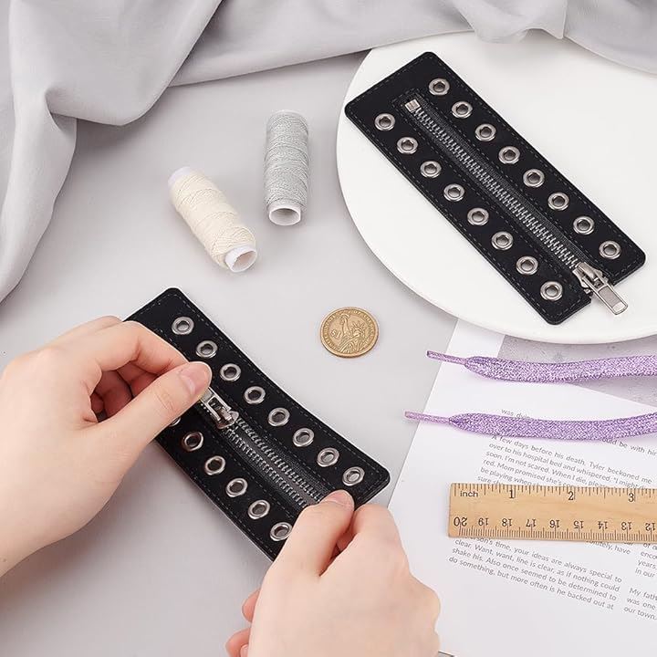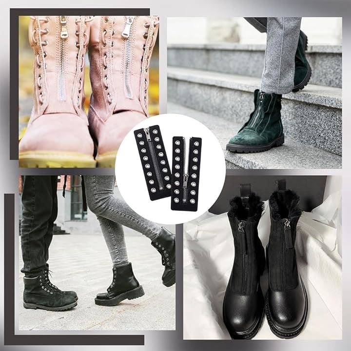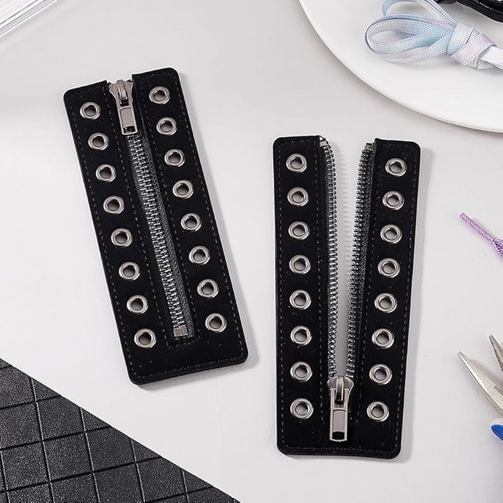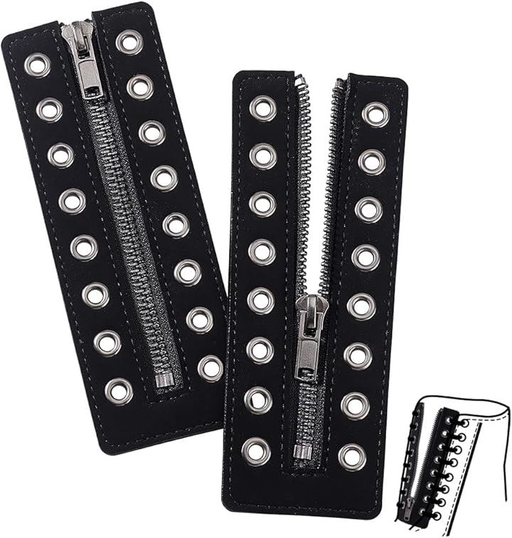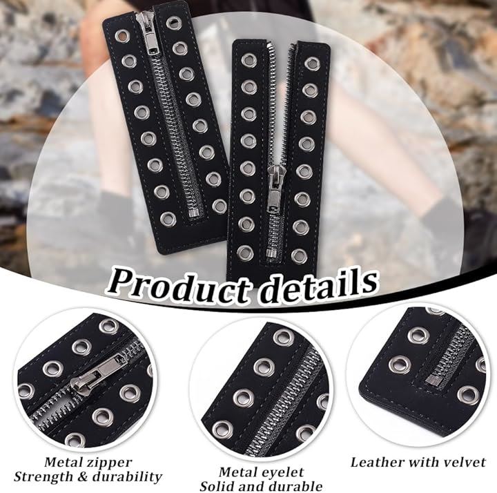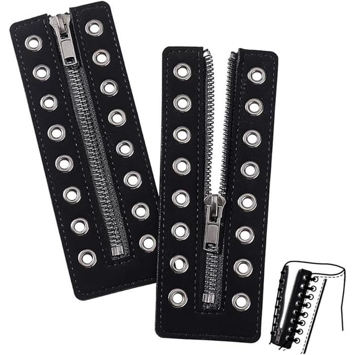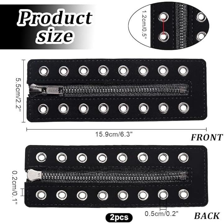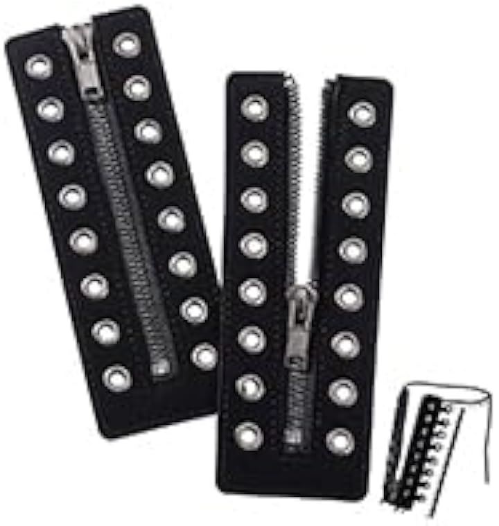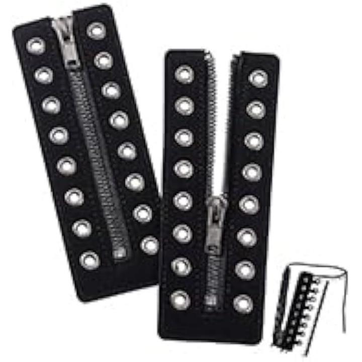 2ペア 50x175mm ブーツジッパー 合金ループ ジッパーファスナー 革靴ジッパー スエード ブーツ用 靴紐なし 8ホール ブラック 交換用 修理用
