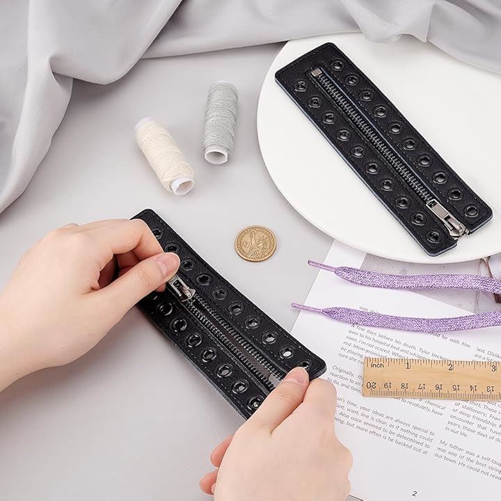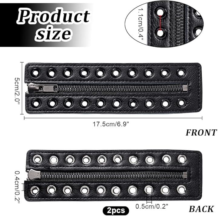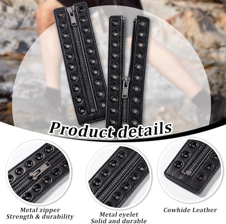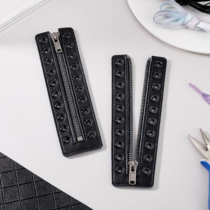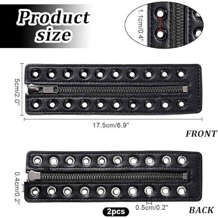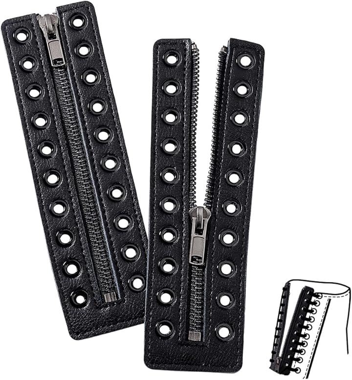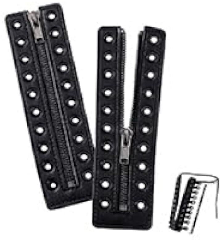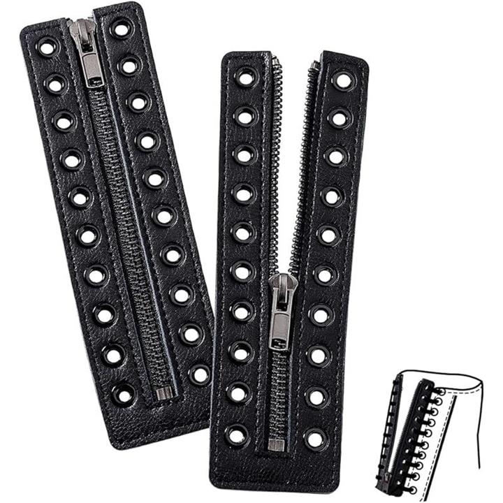 2ペア 50x175mm ブーツジッパー 合金ループ ジッパーファスナー 革靴ジッパー ブーツ用 靴紐なし 10ホール ブラック 交換用 修理用