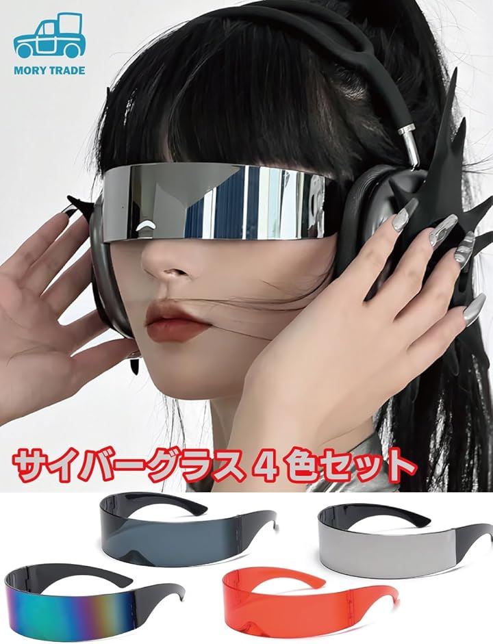 morytrade サイバーパンク サングラス 4個セット 面白めがね コスプレ ハロウィン 近未来