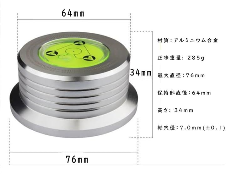 互換品レコードスタビライザー プレーヤー ターンテーブル クランプ アルミニウム合金 振動軽減 LP アクセサリー高精度 安定性 重量 シルバー