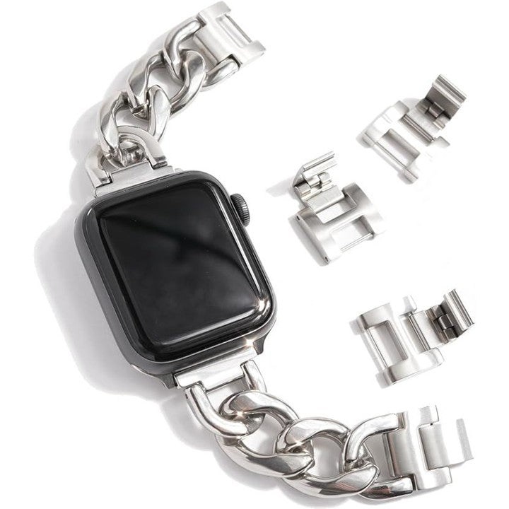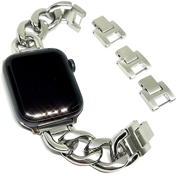「互換品」[Royce&Roland] 互換品/代替品 チェーンバンド おしゃれ 時計 バンド (ステンレス/シルバー) 工具不要/メンズ レディース ギフト プレゼント applewatch アップルウォッチ (44mm 45mm 46mm 49mm, スターライト) |