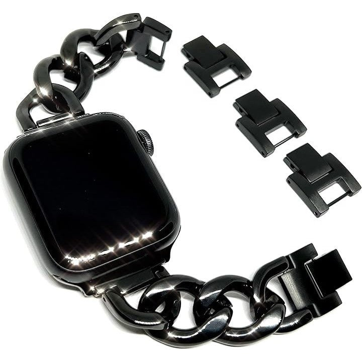 「互換品」[Royce&Roland] 互換品/代替品 チェーンバンド おしゃれ 時計 バンド (ステンレス/シルバー) 工具不要/メンズ レディース ギフト プレゼント applewatch アップルウォッチ (40mm 41mm 42mm, ブラック) |