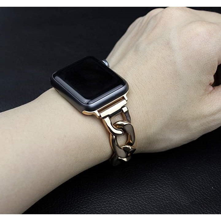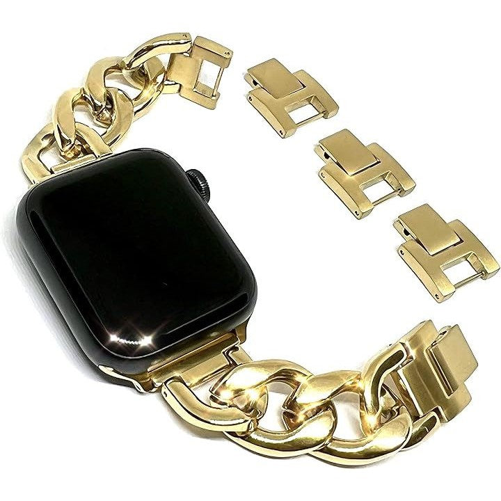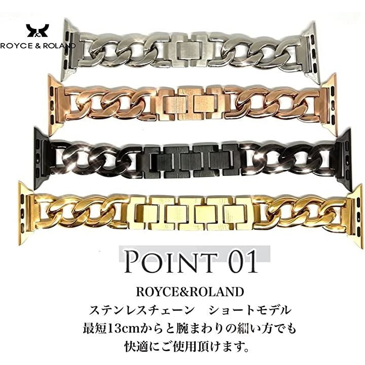 「互換品」[Royce&Roland] 互換品/代替品 チェーンバンド おしゃれ 時計 バンド (ステンレス/シルバー) 工具不要/メンズ レディース ギフト プレゼント applewatch アップルウォッチ (40mm 41mm 42mm, ゴールド) |