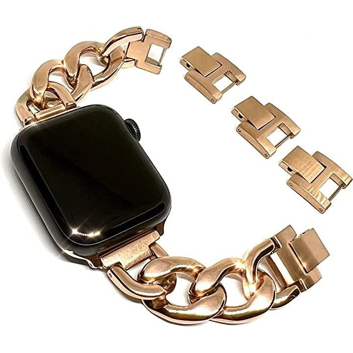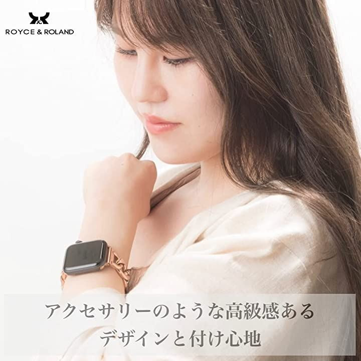 「互換品」[Royce&Roland] 互換品/代替品 チェーンバンド おしゃれ 時計 バンド (ステンレス/シルバー) 工具不要/メンズ レディース ギフト プレゼント applewatch アップルウォッチ (44mm 45mm 46mm 49mm, ピンクゴールド) |
