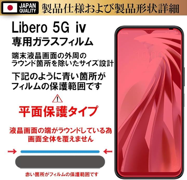2枚セット2024年モデル フィルム Libero 5G IV A302ZT 用 ガラスフィルム 保護フィルム 強化 高透過 高光沢 日本製 旭硝子 硬度10H 2.5Dラウンドエッジ 自動吸着 気泡ゼロ 飛散防止 指紋防止
