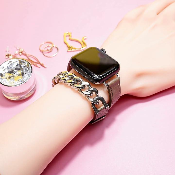 「新型機種にも対応」対応機種(サイズ):Apple Watch Series 10 , 9 , 8 , 7 , 6 , 5 , 4 , SE(40.41.42.44.45.46mm), Ultra 2.1(49mm)「高級感溢れる質感」本革レザーとステンレスチェーンのチェーンベルトは、エレガントで女性らしくファッション性抜群です。