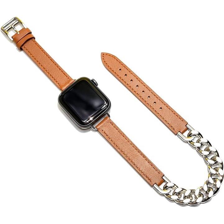 Royce&Roland Apple watch チェーン & レザー ベルト おしゃれ アップルウォッチ バンド (ステンレス 本革/シルバー) レディース ギフト プレゼント (40mm 41mm 42mm, ブラウン) |