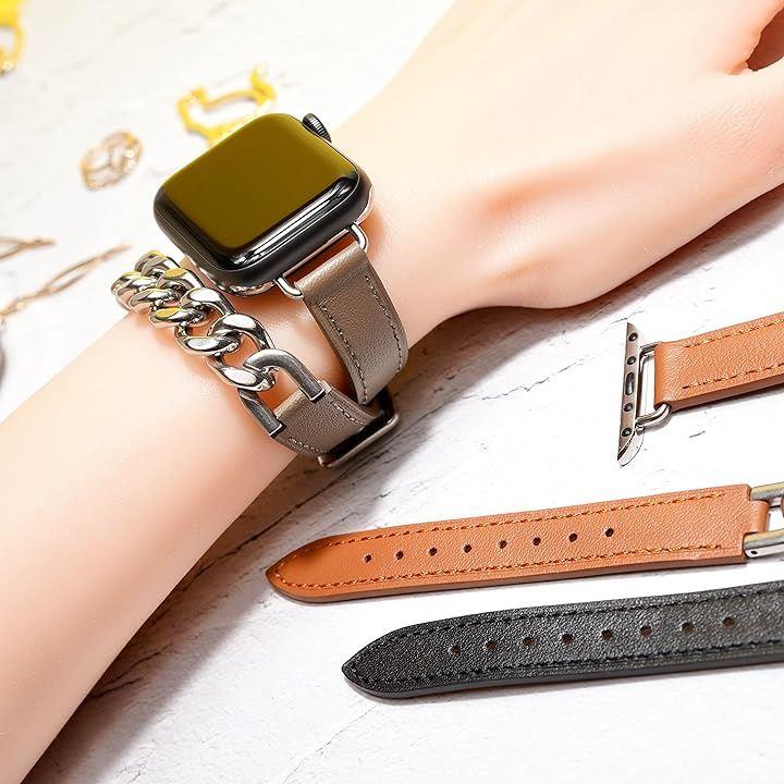 Royce&Roland Apple watch チェーン & レザー ベルト (40mm 41mm 42mm) おしゃれ アップルウォッチ バンド レザーバンド/ステンレス 本革/シルバー ブラック (Series 10 9 8 7 6 5 4 SE Ultra) レディース ギフト プレゼント |