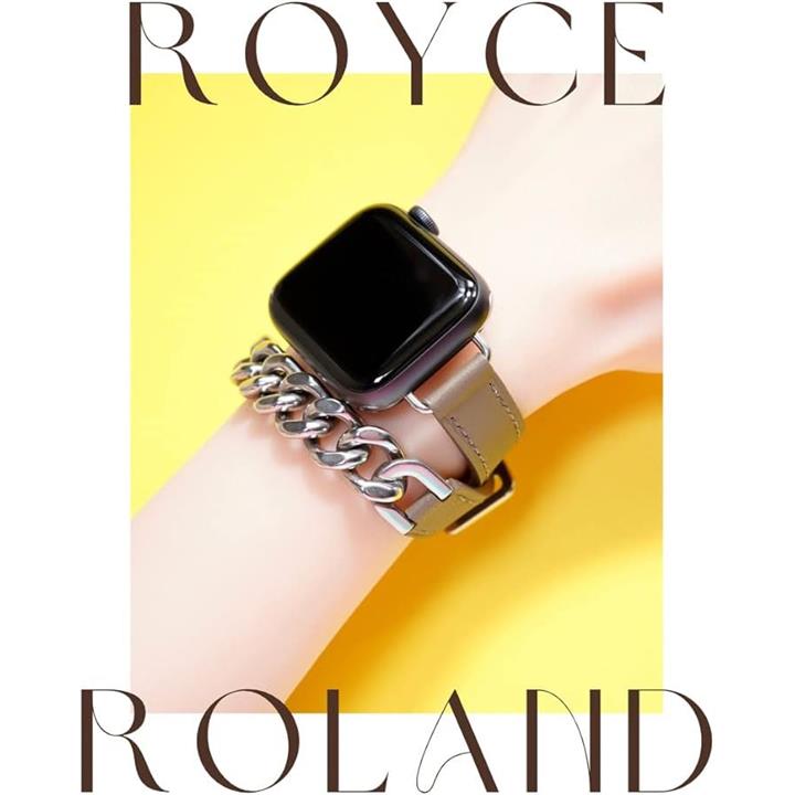 Royce&Roland Apple watch チェーン & レザー ベルト おしゃれ アップルウォッチ バンド (ステンレス 本革/シルバー) レディース ギフト プレゼント (40mm 41mm 42mm, グレイ) |