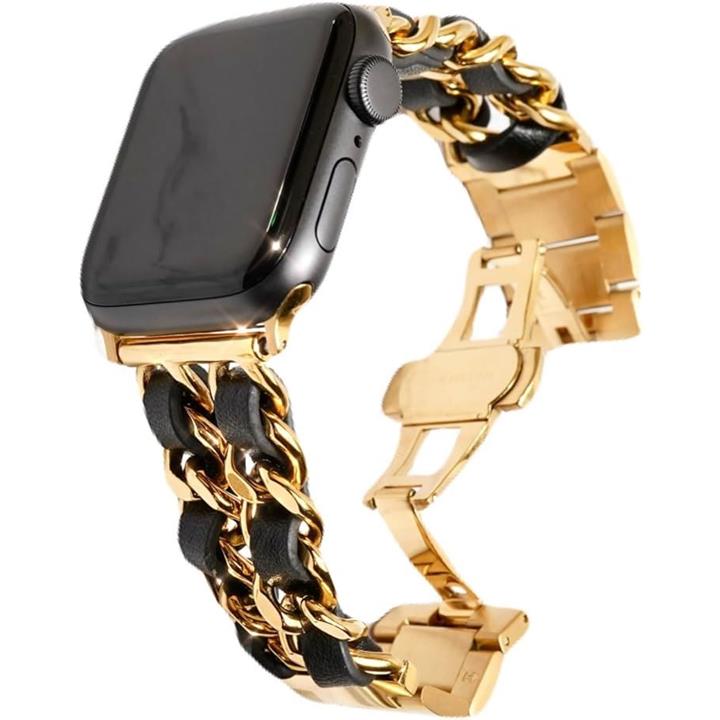 Royce&Roland Apple watch 編み込みバンド バタフライバックル おしゃれ アップルウォッチ 時計 バンド (ステンレス 本革/シルバー) メンズ レディース ギフト プレゼント (44mm 45mm 46mm 49mm, ゴールド/ブラック) |