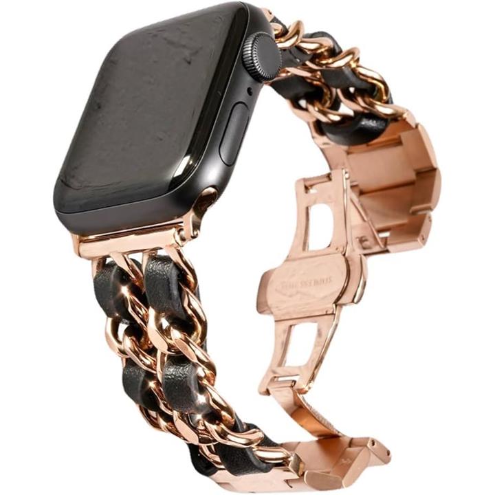 Royce&Roland Apple watch 編み込みバンド バタフライバックル おしゃれ アップルウォッチ 時計 バンド (ステンレス 本革/シルバー) メンズ レディース ギフト プレゼント (40mm 41mm42mm, ピンクゴールド/ブラック) |
