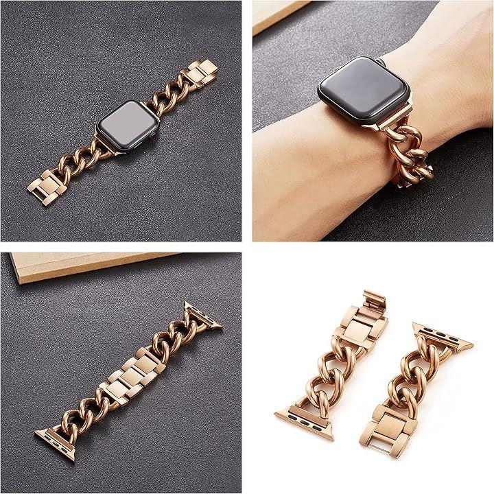 Royce&Roland Apple watch チェーンバンドおしゃれ アップルウォッチ 時計 バンド (ステンレス シルバー) レディース メンズ ギフト プレゼント (40mm 41mm 42mm, ピンクゴールド) |