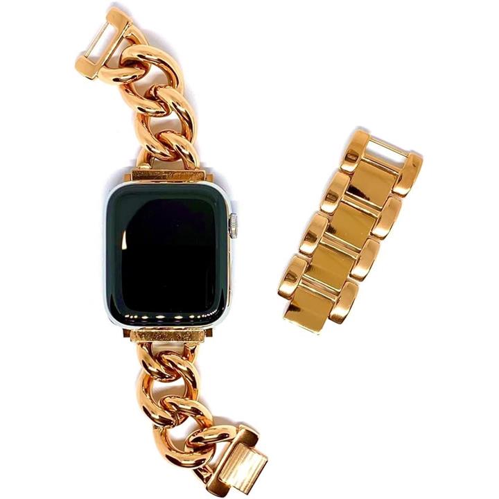 Royce&Roland Apple watch チェーンバンドおしゃれ アップルウォッチ 時計 バンド (ステンレス シルバー) レディース メンズ ギフト プレゼント (44mm 45mm 46mm 49mm, ゴールド) |