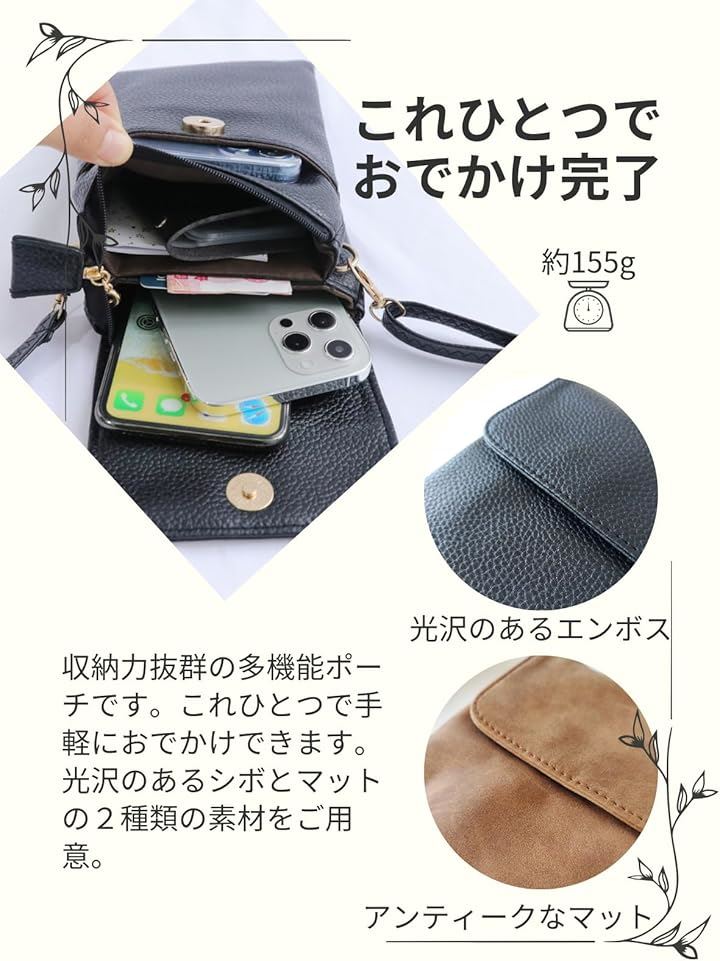 スマホポーチ ショルダーバッグ スマホポシェット サブバッグ 財布 ショルダーポーチ レディース 長さ調節 斜め掛け 多機能 軽量 ファスナーポケット