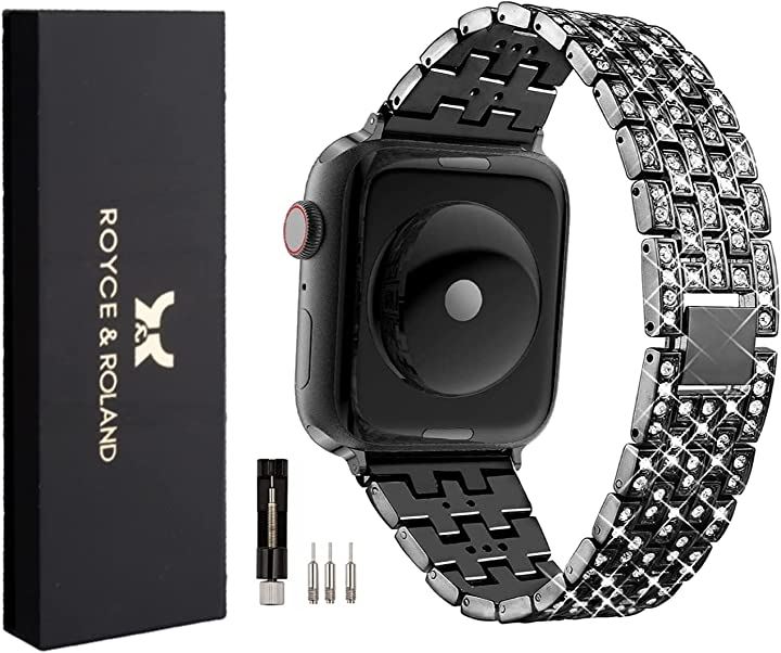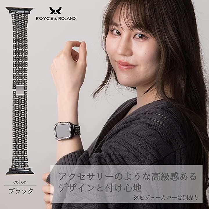 Royce&Roland Apple Watch キラキラ ベルト バンド 工具付属 (ジルコニア) お洒落 ギフト レディース (40mm 41mm 42mm, ブラック) |