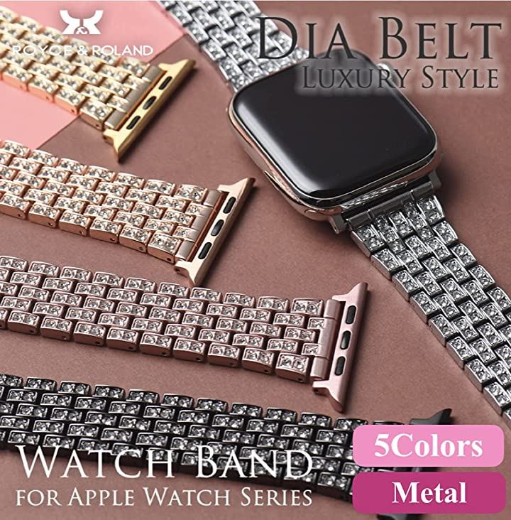Royce&Roland Apple Watch キラキラ ベルト バンド 工具付属 (ジルコニア) お洒落 ギフト レディース (44mm 45mm 46mm 49mm, ピンクゴールド) |
