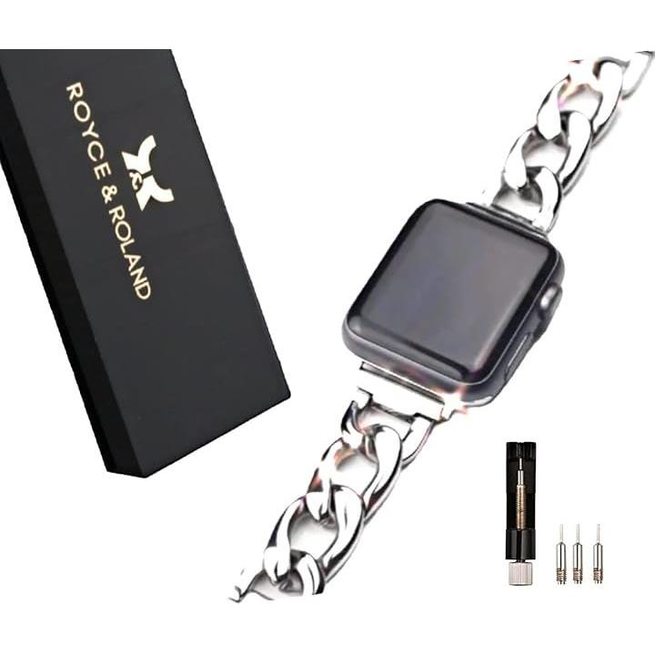Royce&Roland Apple watch チェーンバンド コマ調整器付き おしゃれ アップルウォッチ 時計 バンド (ステンレス/シルバー) レディース メンズ ギフト プレゼント (44mm 45mm 46mm 49mm) |