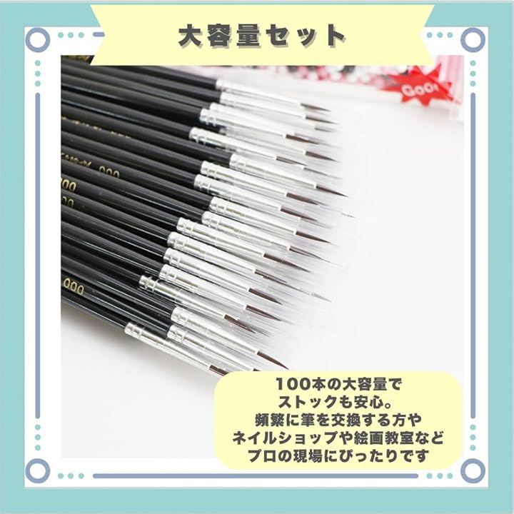極細筆 塗装筆 化粧筆 小筆 絵画 ネイル 多用途 大容量 ストック 使い分け 100本セット