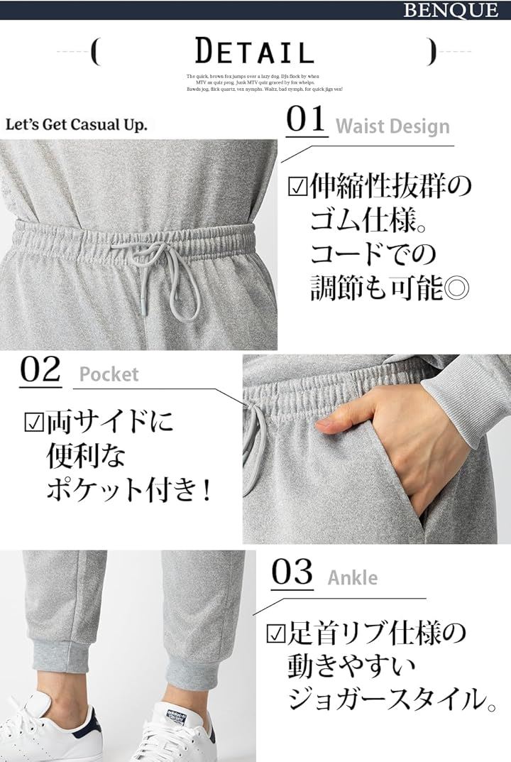 「スポーツにも部屋着にも」適度な伸縮性がある生地なので、ランニングやスポーツはもちろん、部屋着としても重宝するウェアです。