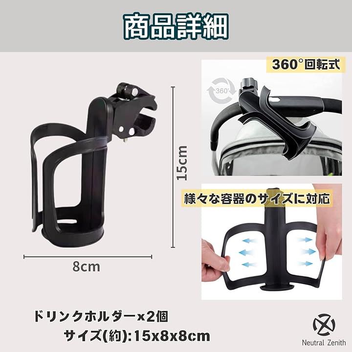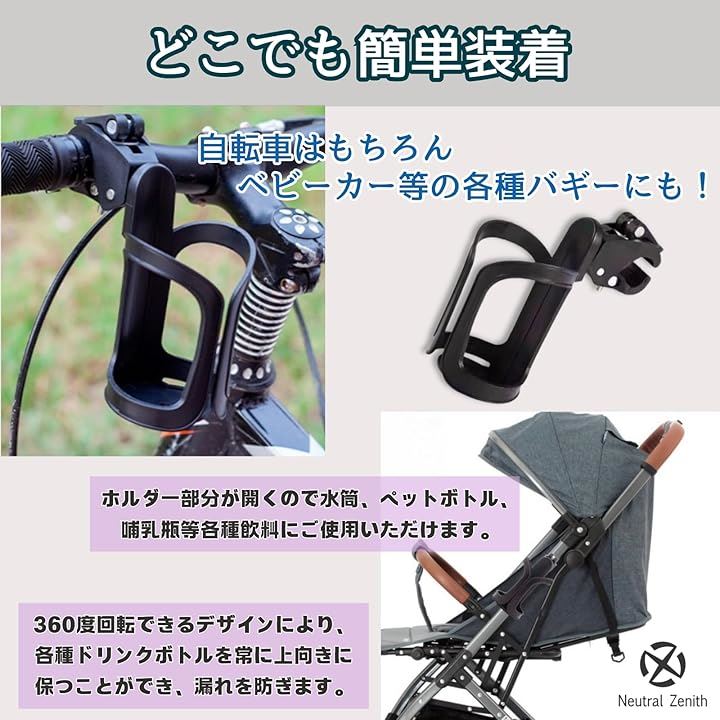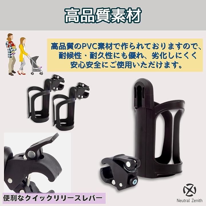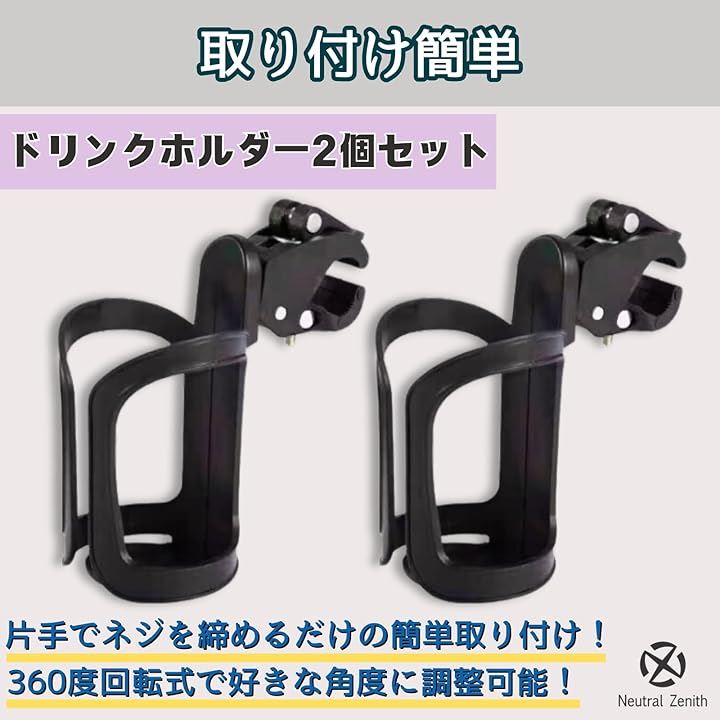 ドリンクホルダー 自転車 ベビーカー 簡単取り付け 工具不要 2個セット クイックリリースレバータイプ