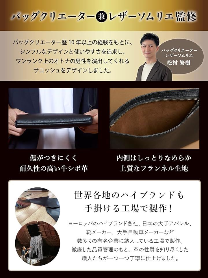 サコッシュ メンズ 本革 クラッチバッグ ショルダーバッグ 結婚式