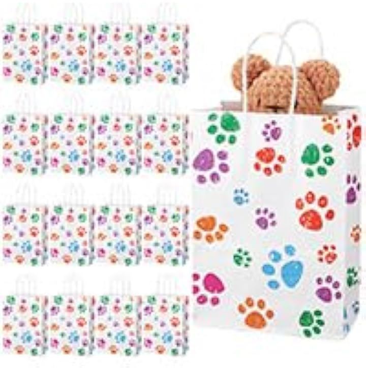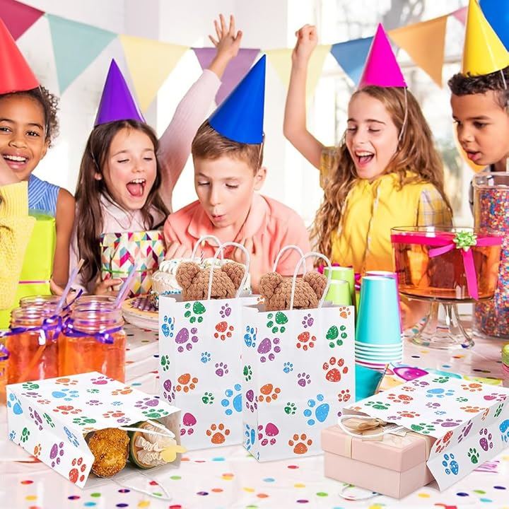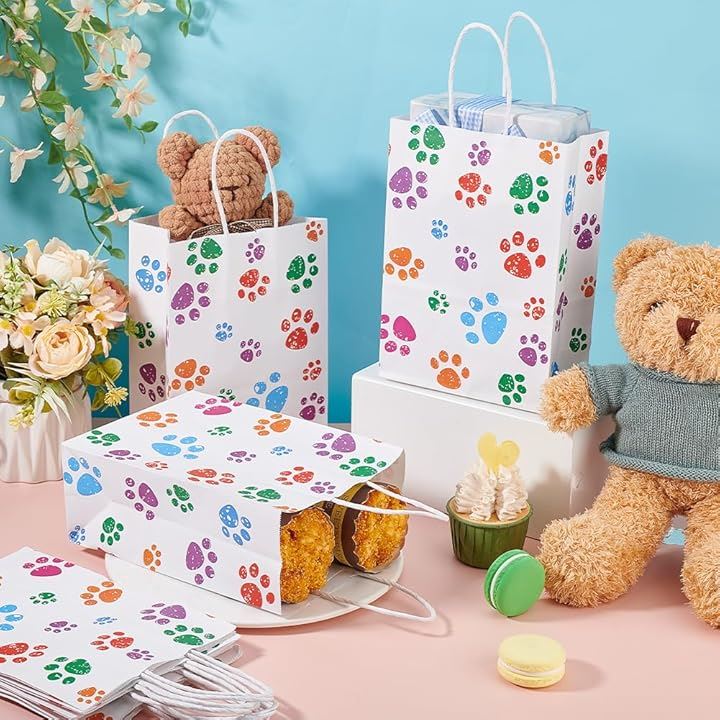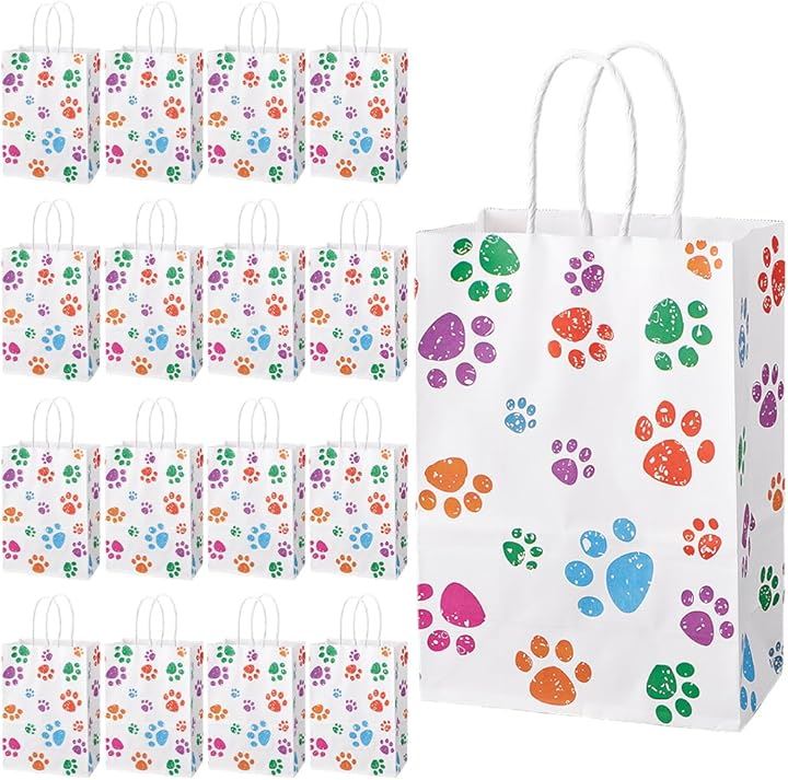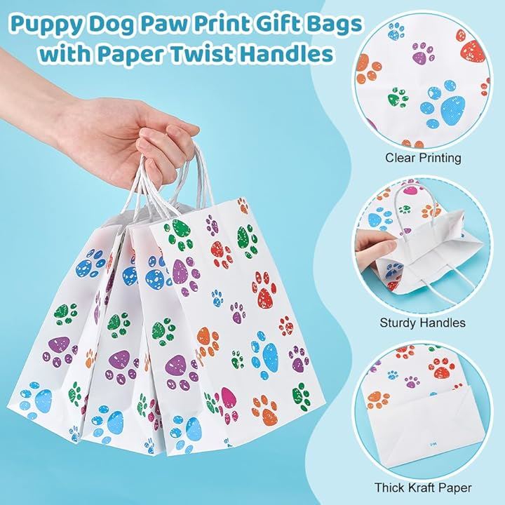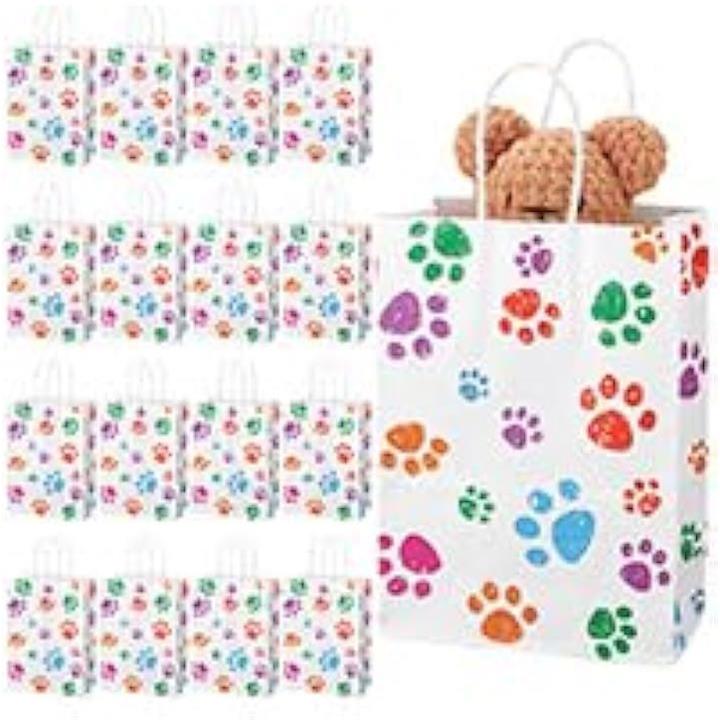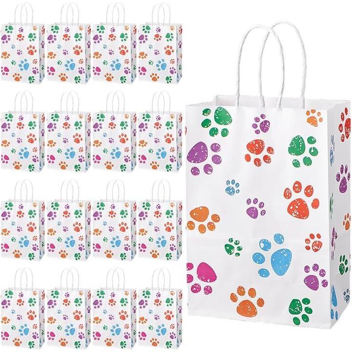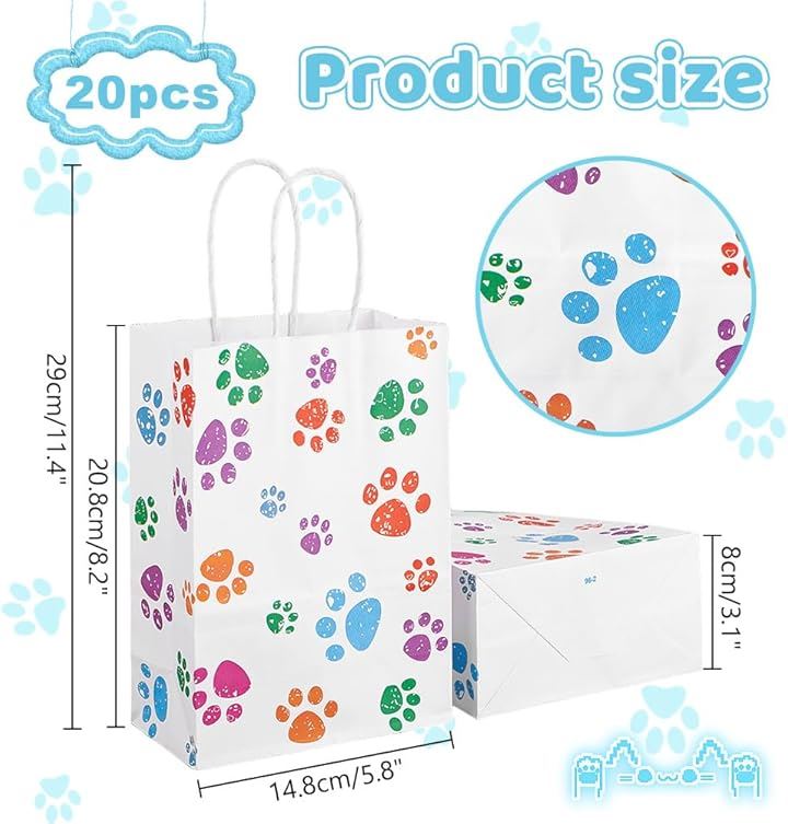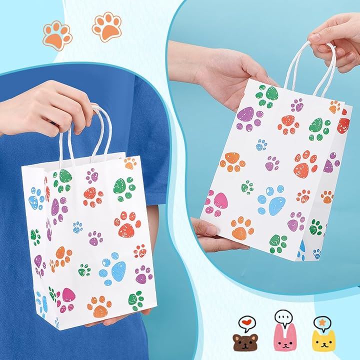 20個 8x14x20cm 足跡紙袋 カラフル 犬のギフトバッグ 足のギフトバッグ ポータブル紙袋 収納袋 ハンドル付き 包装袋 ハンドバッグ 装飾用 キャンディーバッグ