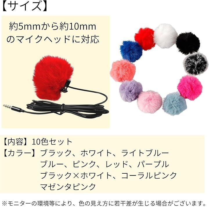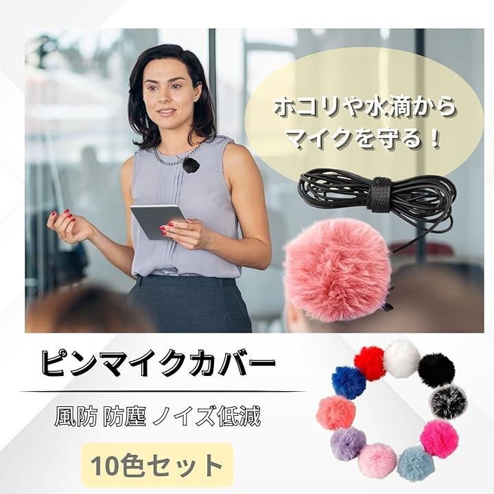 互換品 ピンマイクカバー ノイズ低減 ラペルマイク 風防 防塵 10色セット