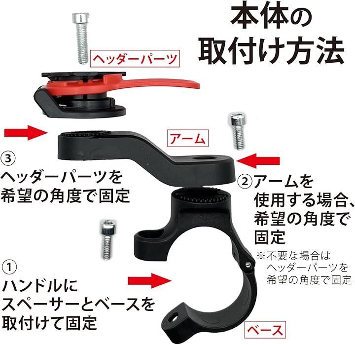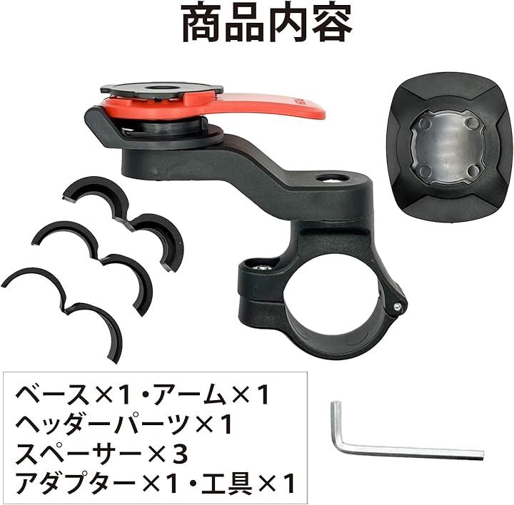 バイク、自転車、原付、スクーターのスマホホルダーや携帯ホルダーとしてはもちろん、対応サイズのマウントやバーなどの取り付けも可能。