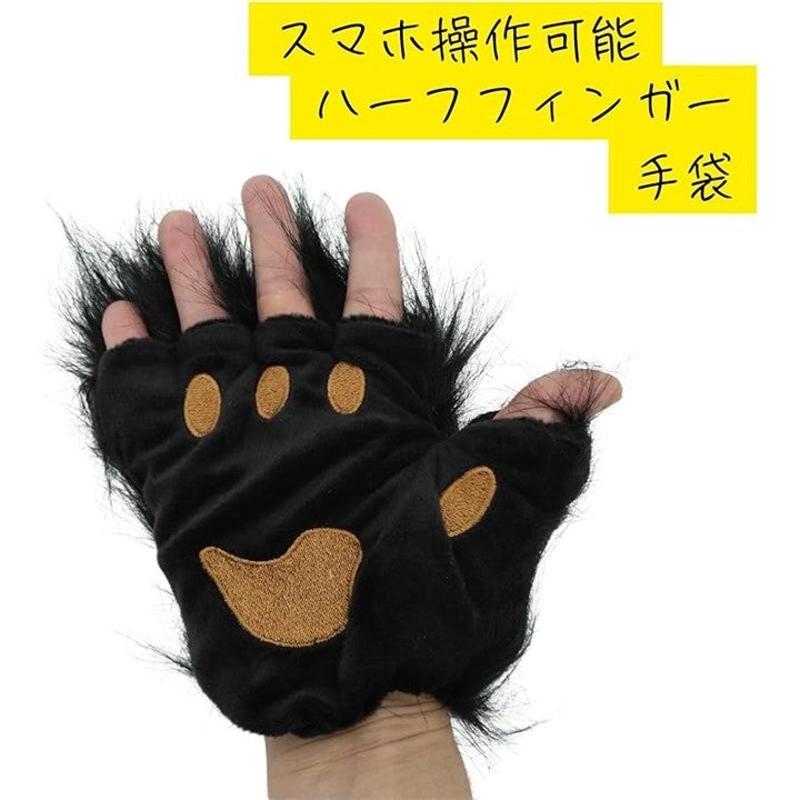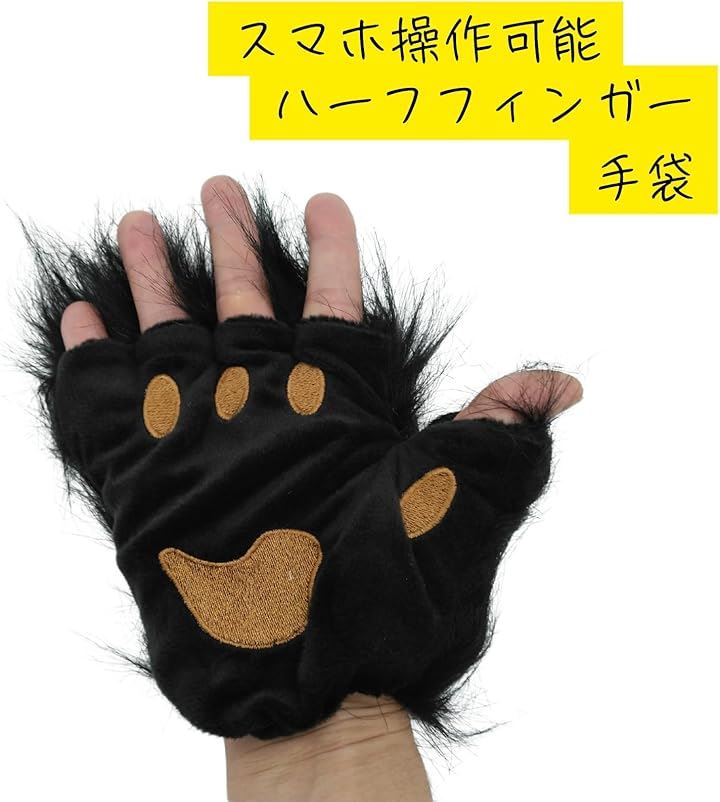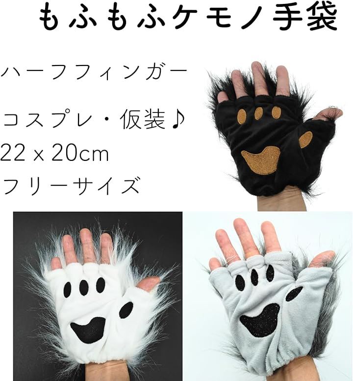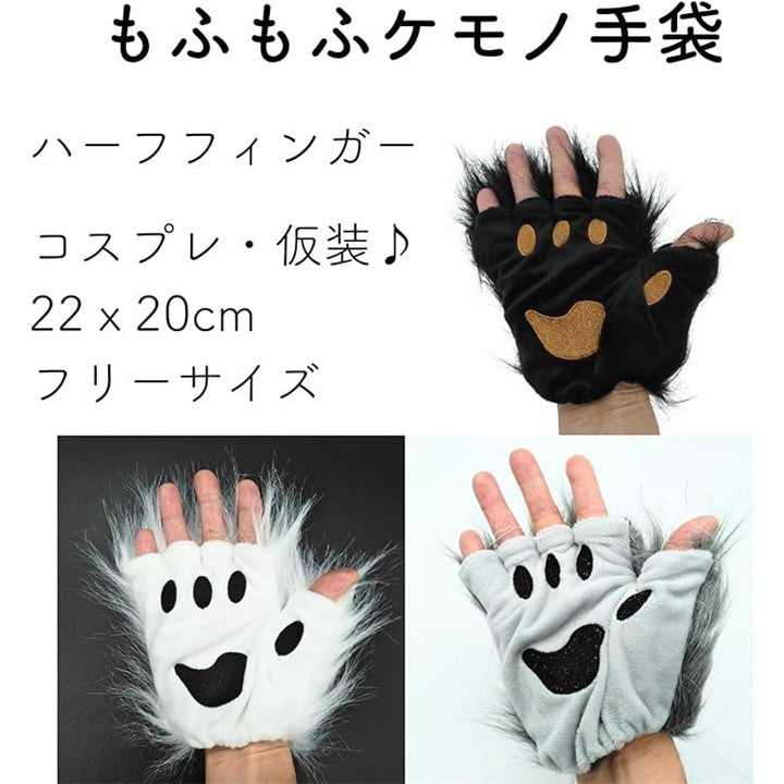 もふもふ 手袋 コスプレ 猫 動物 ケモナー ふわふわ 半指 ハロウィン