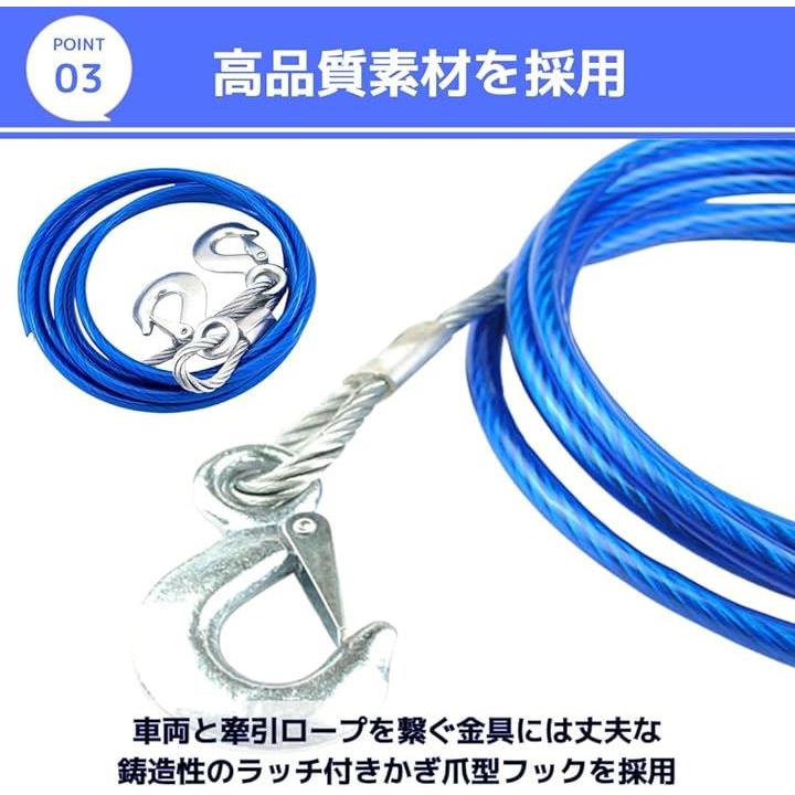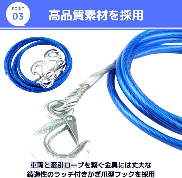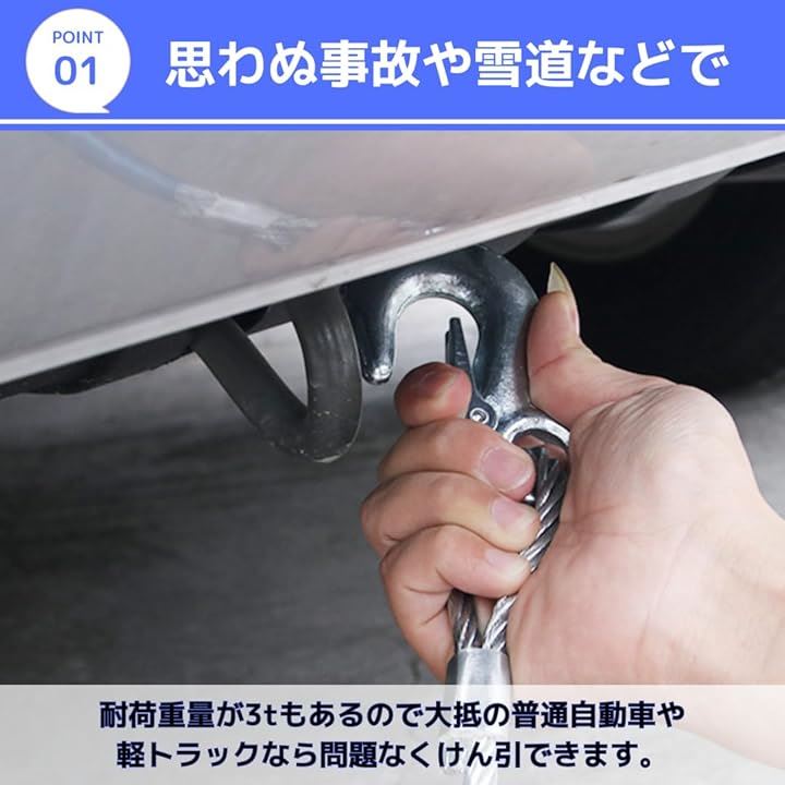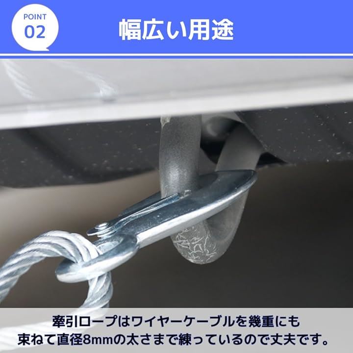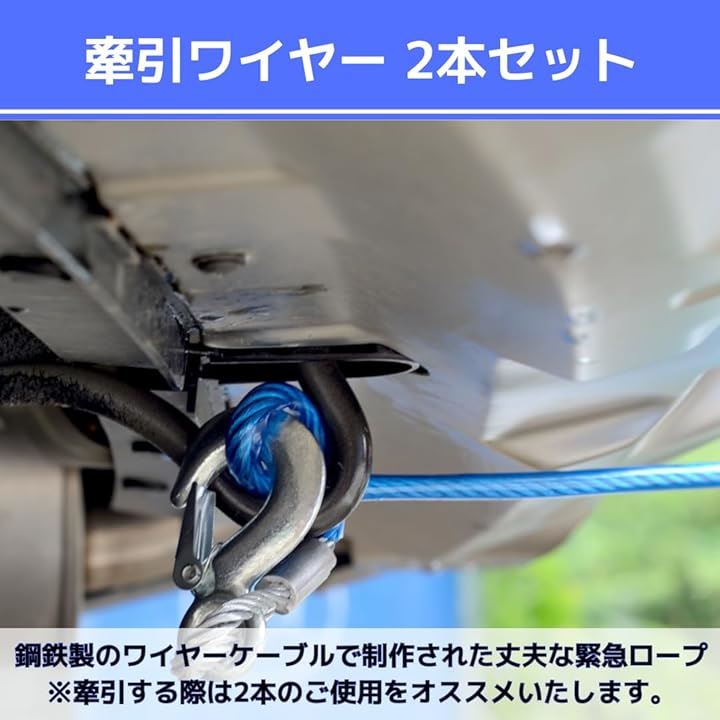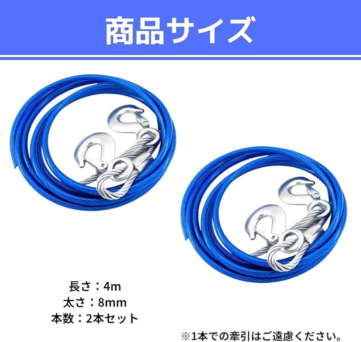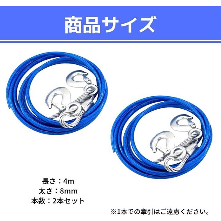 牽引ロープ 牽引ワイヤー 車 けん引 事故 災害 耐荷重3t 幅8mm 長さ4m 2本セット
