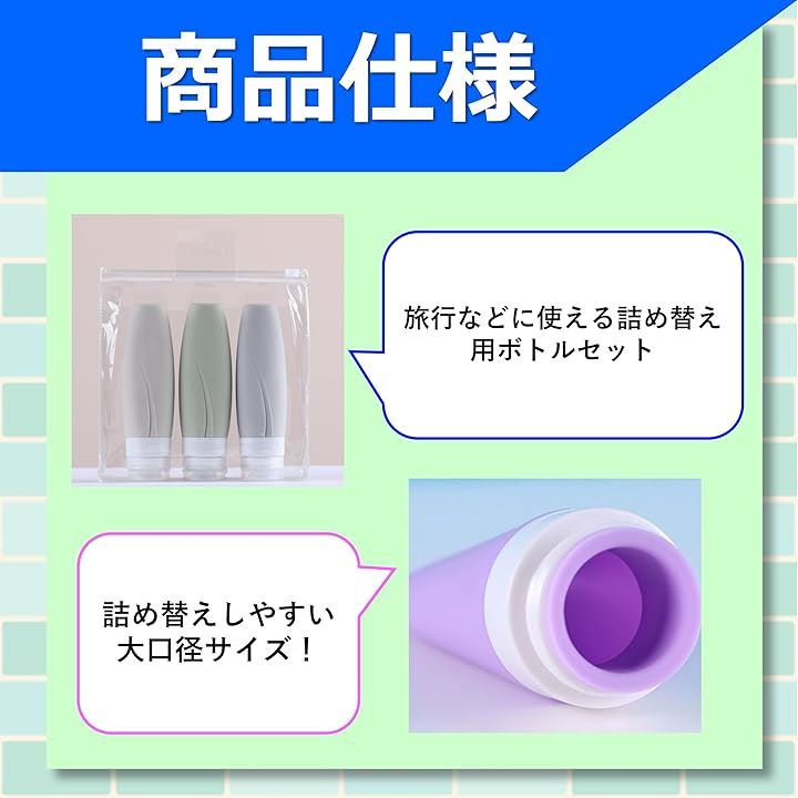 旅行用 シャンプー セット シャンプーボトル トラベルボトル 漏れない ジム 詰め替えボトル トラベルセット シリコン製3個セット 透明ポーチ