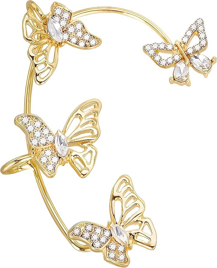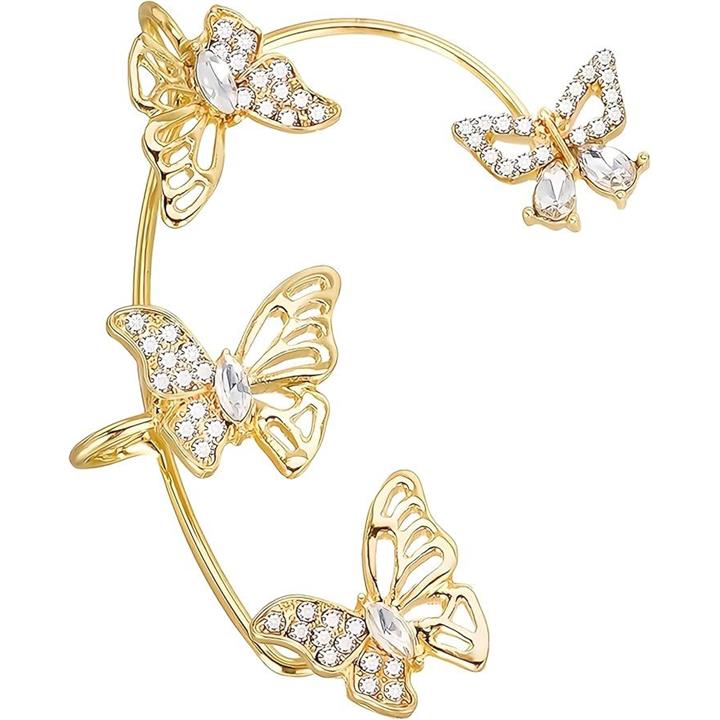 バタフライ イヤリング イヤーカフ 蝶 チョウ ノンホール レディース ストーン 昆虫 蝶々