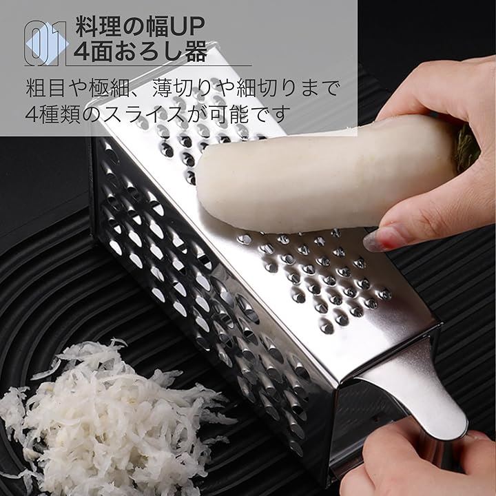 すりおろし器 チーズ削り チーズグレーター おろし金 4面 野菜 食洗機使用可 筒型 持ち手付き ステンレス製