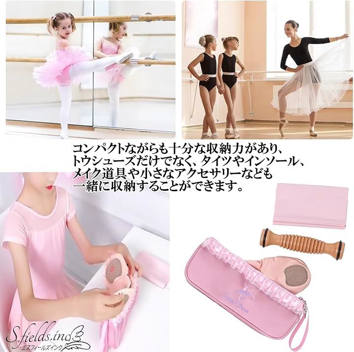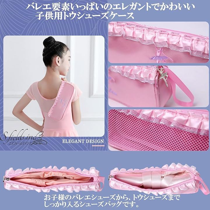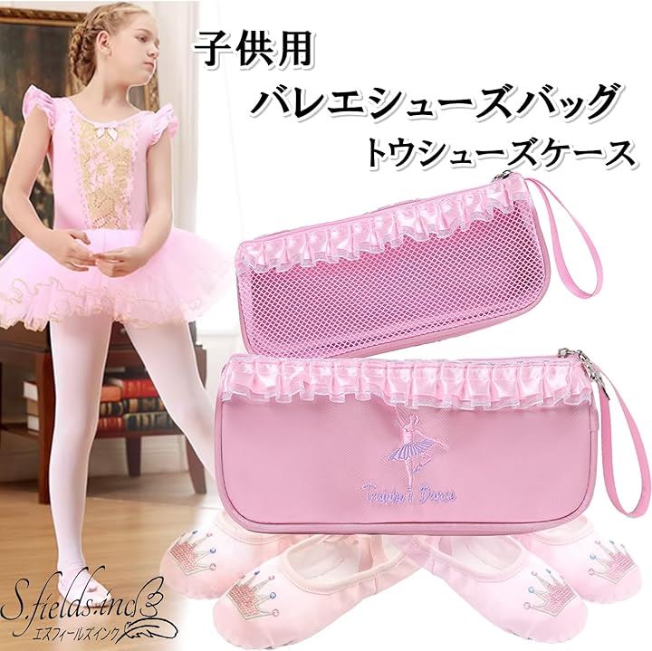 トウシューズケース バレエシューズバッグ 子供用 バレエダンス レッスン ピンク 女の子 ポリエステル