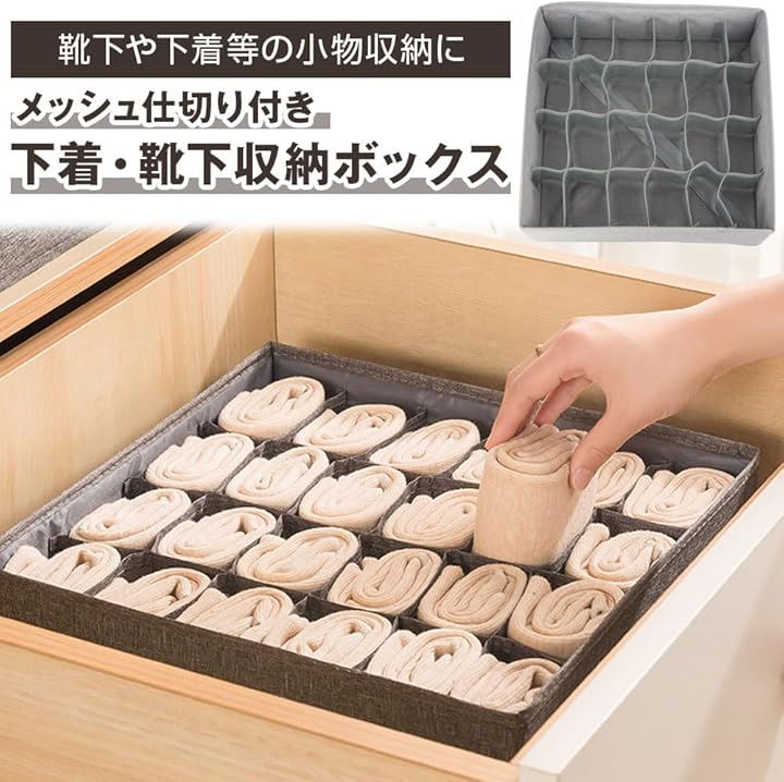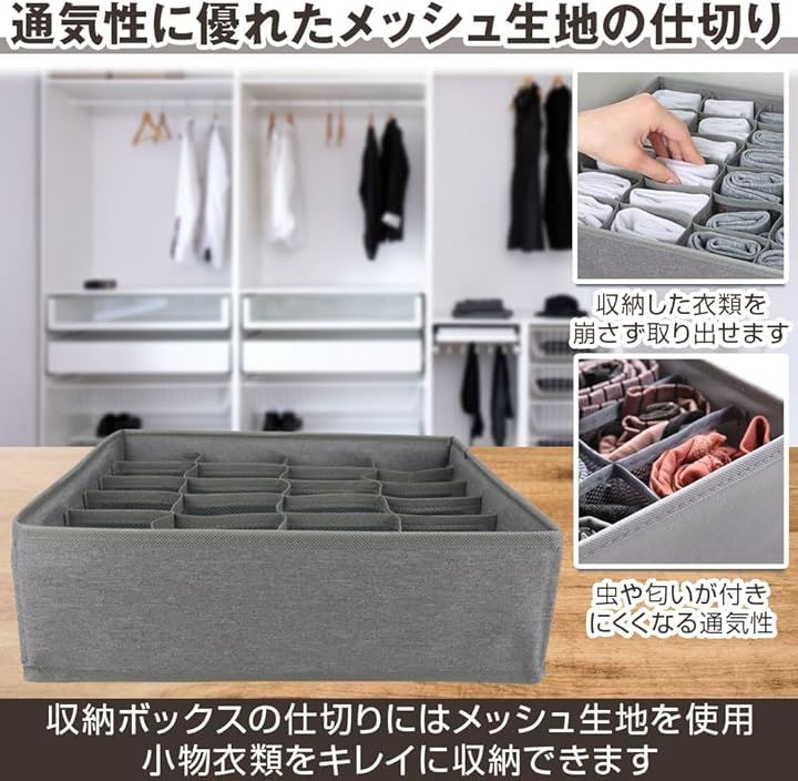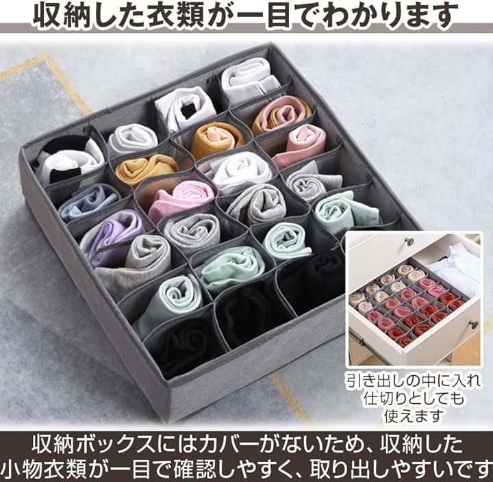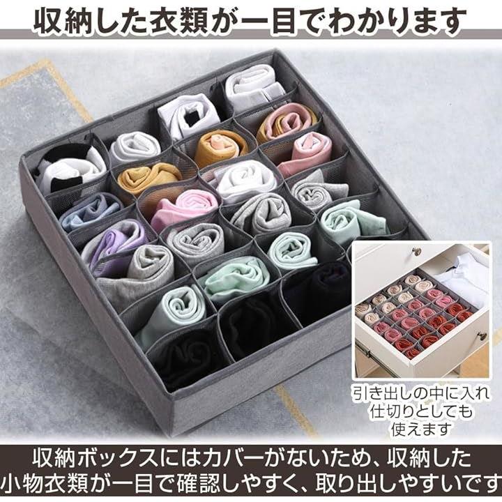 衣類用引き出し仕切り 靴下 下着 ハンカチ 収納 大容量 24マス 整理 防湿&防カビ