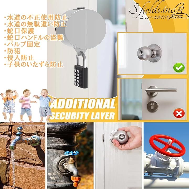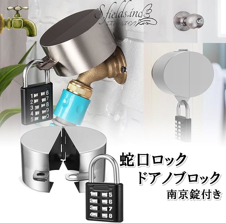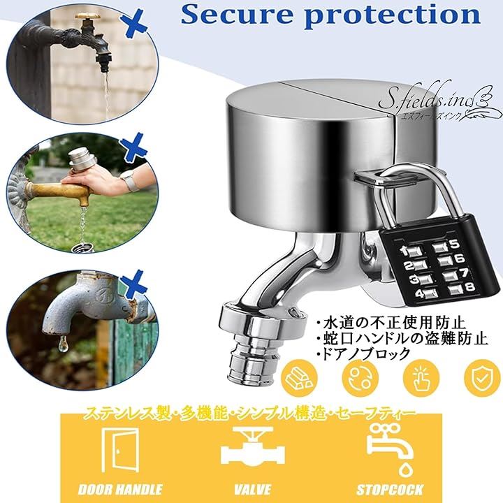 蛇口ロック 南京錠付き 鍵 屋外 水道 蛇口ハンドルカバー バルブ ドアノブ ステンレス