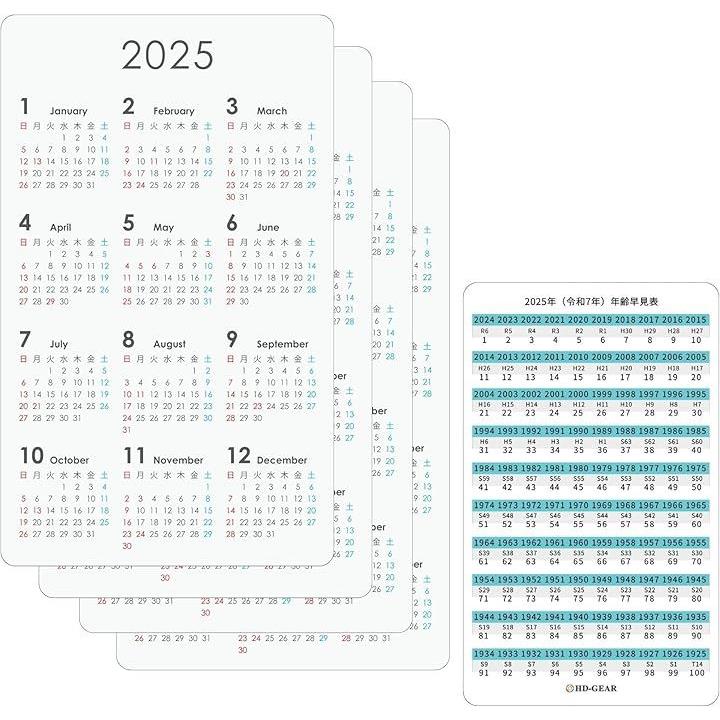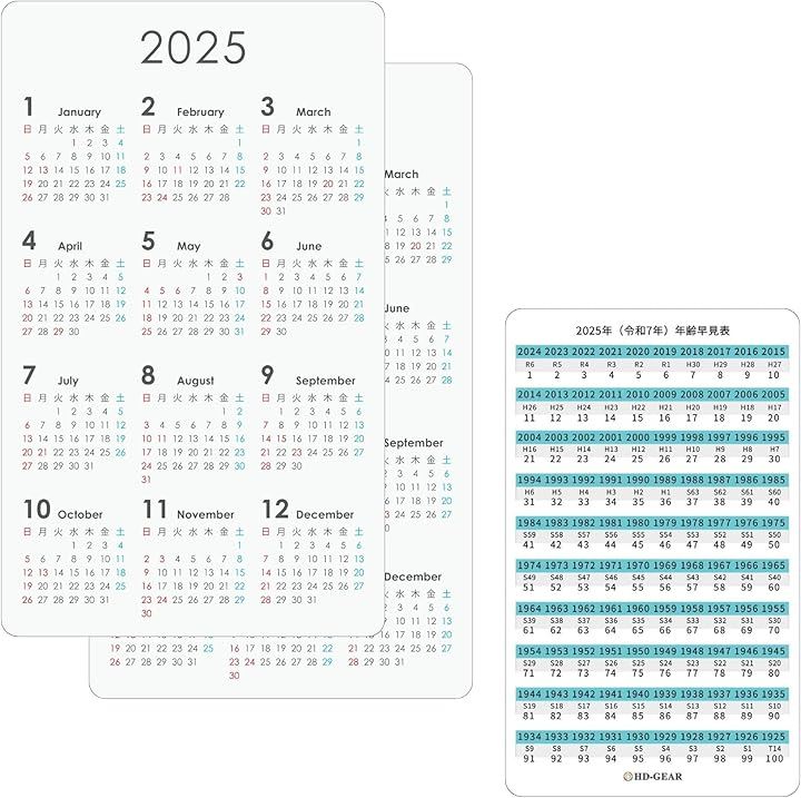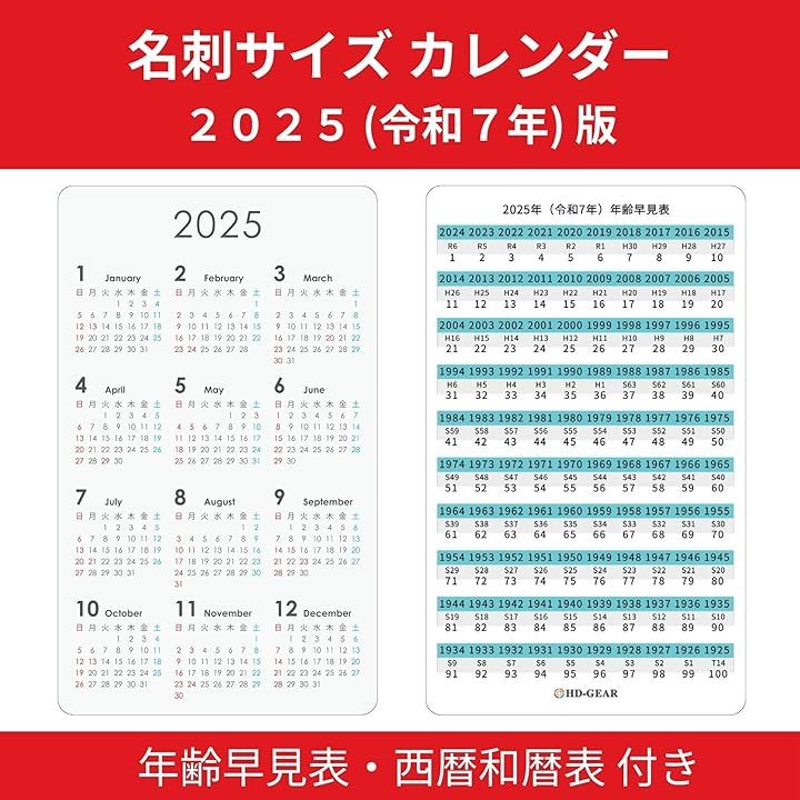 名刺サイズ カードタイプ カレンダー 2025 令和7年 年齢早見表・西暦和暦表付き ポケットサイズ